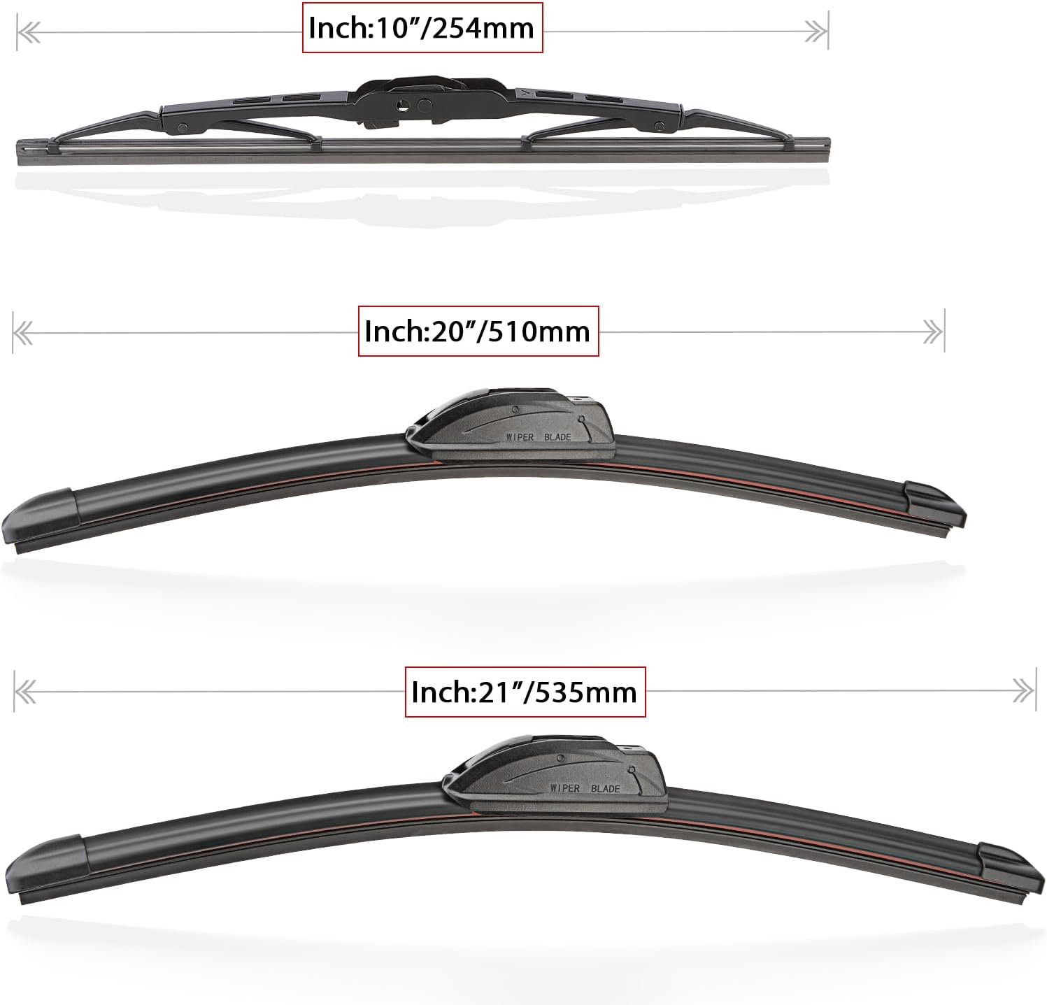 - {WIPER PERFORMANCE}: Natural rubber material making sure the wiping is the best, quiet wiping without judder or squeaking, resistant and a long service life.